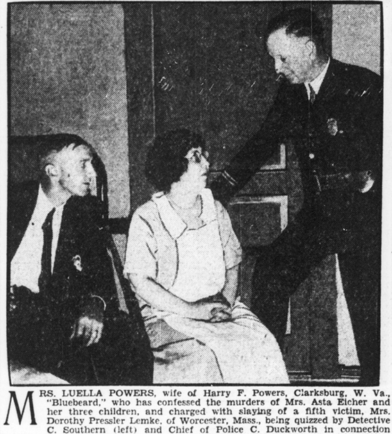 Начальник полиции обсудил со своим единственным детективом полученную информацию. Оба полицейских знали кто такой Гарри Пауэрс - это был муж Луэллы Пауэрс (Luella Powers), которую все называли сокращённым именем Лулу. Эта женщина до своего замужества в 1927 году носила фамилию Штрётер (Strother) и владела небольшим продуктовым магазином. Имелся свой бизнес и у Гарри - тот являлся владельцем фирмы под названием "Romeo", специализировавшейся на орагнизации и проведении свадеб - заказе свадебных гардеробов, цветов, автомобилей для свадебных кортежей, рассадке гостей за столами, их поселение в гостиницах и пр. Вместе с супругами проживала младшая сестра Лулу, звали её Ева Белль Штрётер (Eva Belle Strother) - это была женщина довольно неприятная и сварливая. Вообще же, компания эта выглядела довольно необычно и можно было только догадываться, что и как происходит в этом семействе за закрытыми дверями.