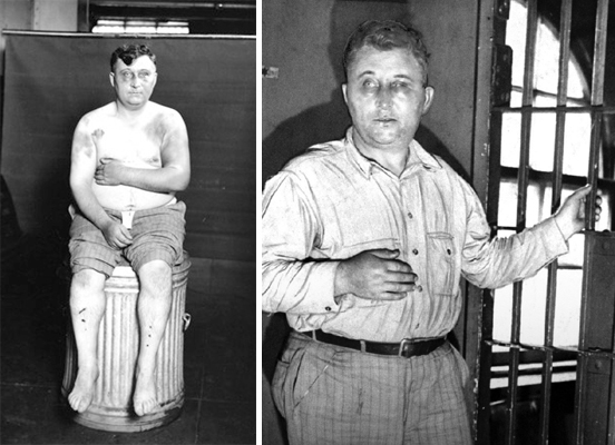 Гарри Пауэрс после энергичной 12-часовой беседы, проведенной с ним сотрудниками полиции Кларксберга во второй половине дня 27 августа 1931 года. Фотографии сделаны в середине следующего дня.