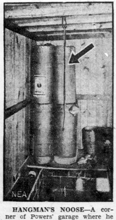 Первое, что увидели полицейские и сотрудники службы шерифа, войдя в гараж Гарри Пауэрса, оказалось... верёвкой со скользящим узлом на конце, закреплённой на стропилах. Под петлёй находилась яма, подле которой лежал лист толстой фанеры, являвшийся крышкой [или люком] и прекрасно маскировавший эту яму при закрывании.