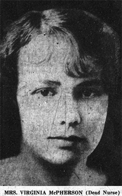 Тело Вирджинии МакФерсон (Virginia McPherson), 24-летней медсестры больницы "Гэллинджер" (Gallinger Hospital) в Вашингтоне, столице Соединённых Штатов, утром 14 сентября 1929 года обнаружил её муж Роберт МакФерсон. Произошло это при обстоятельствах довольно волнительных, потребовавших от участников тех событий известного напряжения душевных сил. Вирджиния проживала в №115 в комплексе "Park Lane Apartments" на Лексингтон авеню - по сути это была комфортная и просторная 3-комнатная квартира. Роберт, будучи мужем хозяйки, имел собственный ключ, каковым и открыл входную дверь немногим ранее 11 часов утра. Он некоторое время ходил по комнатам, снимая верхнюю одежду, и даже сделал телефонный звонок, полагая, что Вирджинии нет дома. В конце концов он дошёл до двери в спальню, тронул её и... с удивлением обнаружил, что та заперта.
